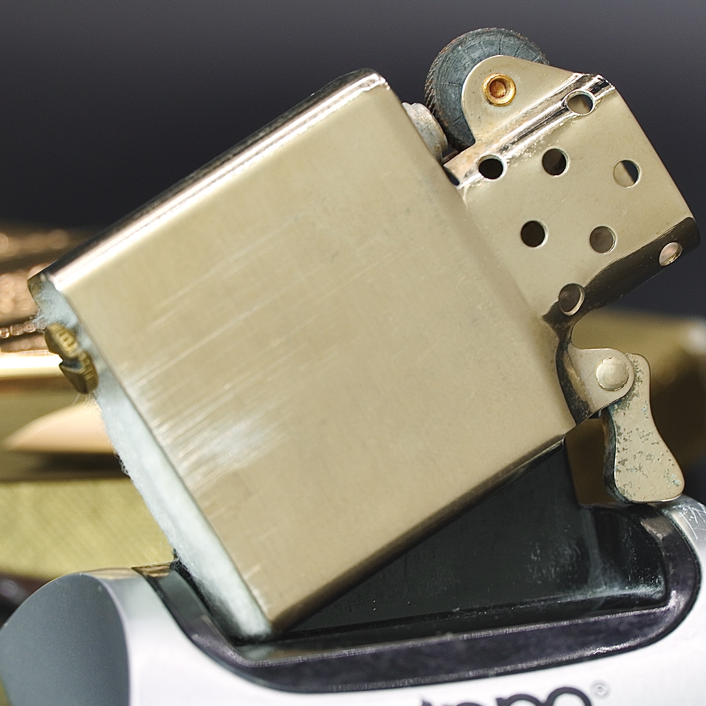 - Thiết kế Zippo nguyên bản , Zippo xưa hoạt động rất tốt. nên sử dụng khăn mềm để lau bề mặt
