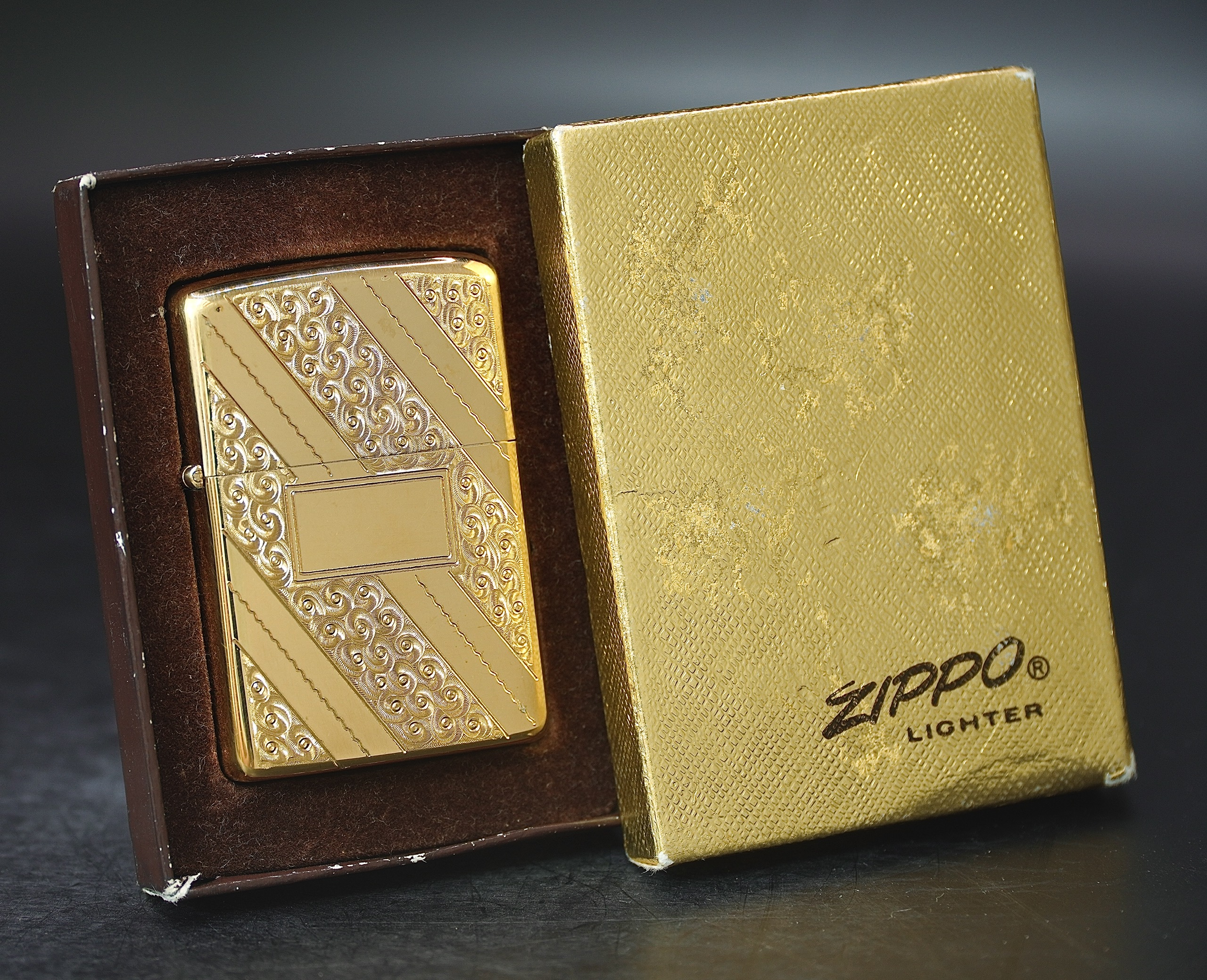 ZIPPO XƯA GOLD PLATED 1976 - HÀNG XƯA THẬP NIÊN 70s _ CHỦ ĐỀ DIAGONAL SWIRL